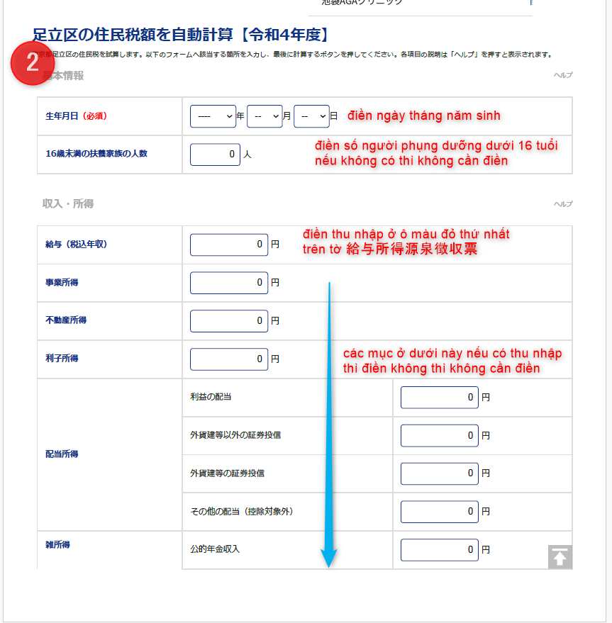 Bước đầu tiên, bạn vào google tìm kiếm từ khóa ”住民税の自動計算サイト” và làm theo hình dưới đây.