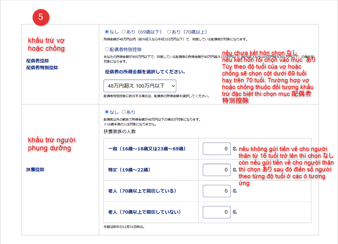 Bước 5: Điền thông tin khấu trừ của vợ/chồng, số người phụng dưỡng.