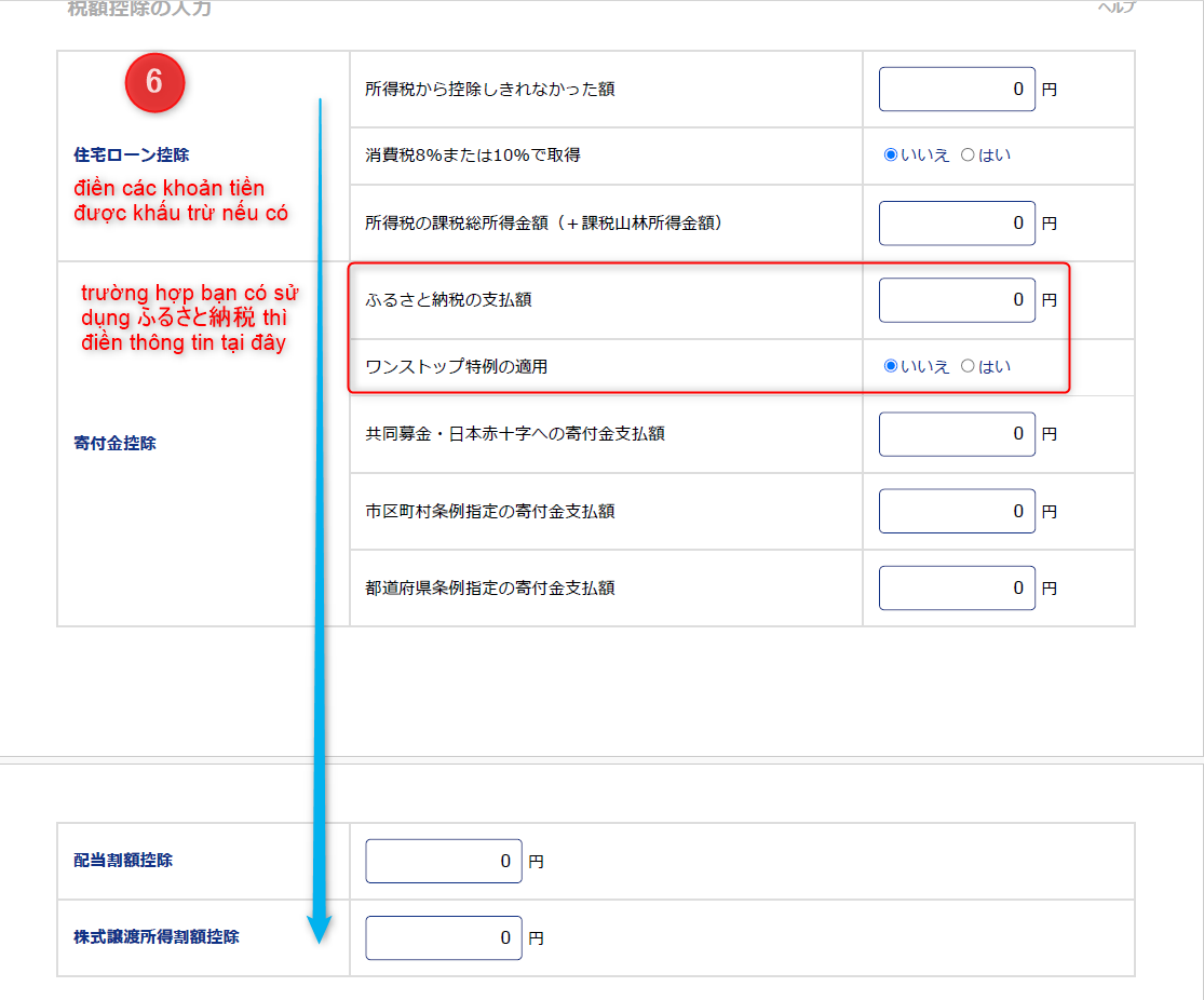 Bước 6: Điền số tiền được giảm trừ khi đăng ký sử dụng ふるさと納税 hoặc làm từ thiện.