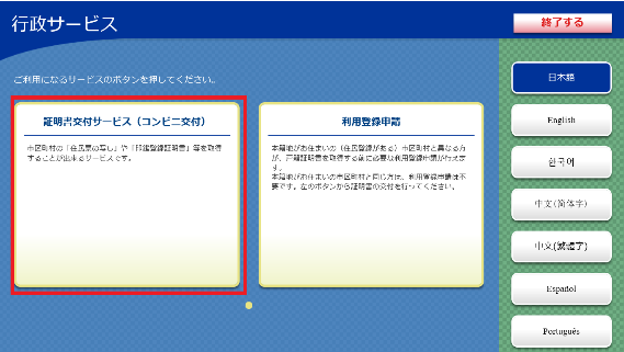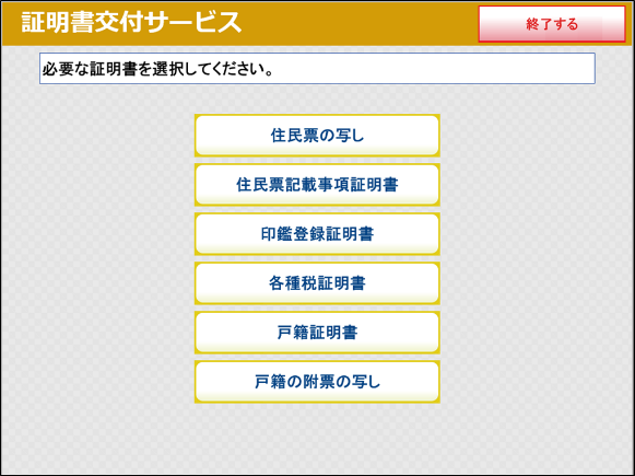 Bước 5: Chọn giấy tờ hành chính cần lấy, hầu hết là 「お住まいの市区町村の証明書」