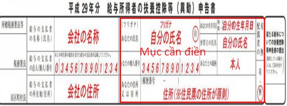 Vào cuối năm khi công ty sẽ đưa cho bạn những tờ giấy để ghi điều chỉnh cuối năm (年末調整) trong đó sẽ có 1 tờ gọi là「給与所得者の扶養控除等(異動)申告書」 (Tờ khai xin giảm trừ thuế do có người phụ thuộc kinh tế vào mình) .