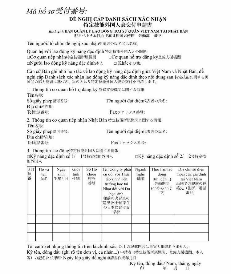Trong vòng 1 tuần kể từ khi nhận đủ hồ sơ hợp lệ, bộ phận quản lý lao động thuộc Đại sứ quán Việt Nam tại Nhật Bản sẽ xác nhận (không thu phí) và gửi lại danh sách đã được ký, đóng dấu xác nhận theo đường bưu điện.
