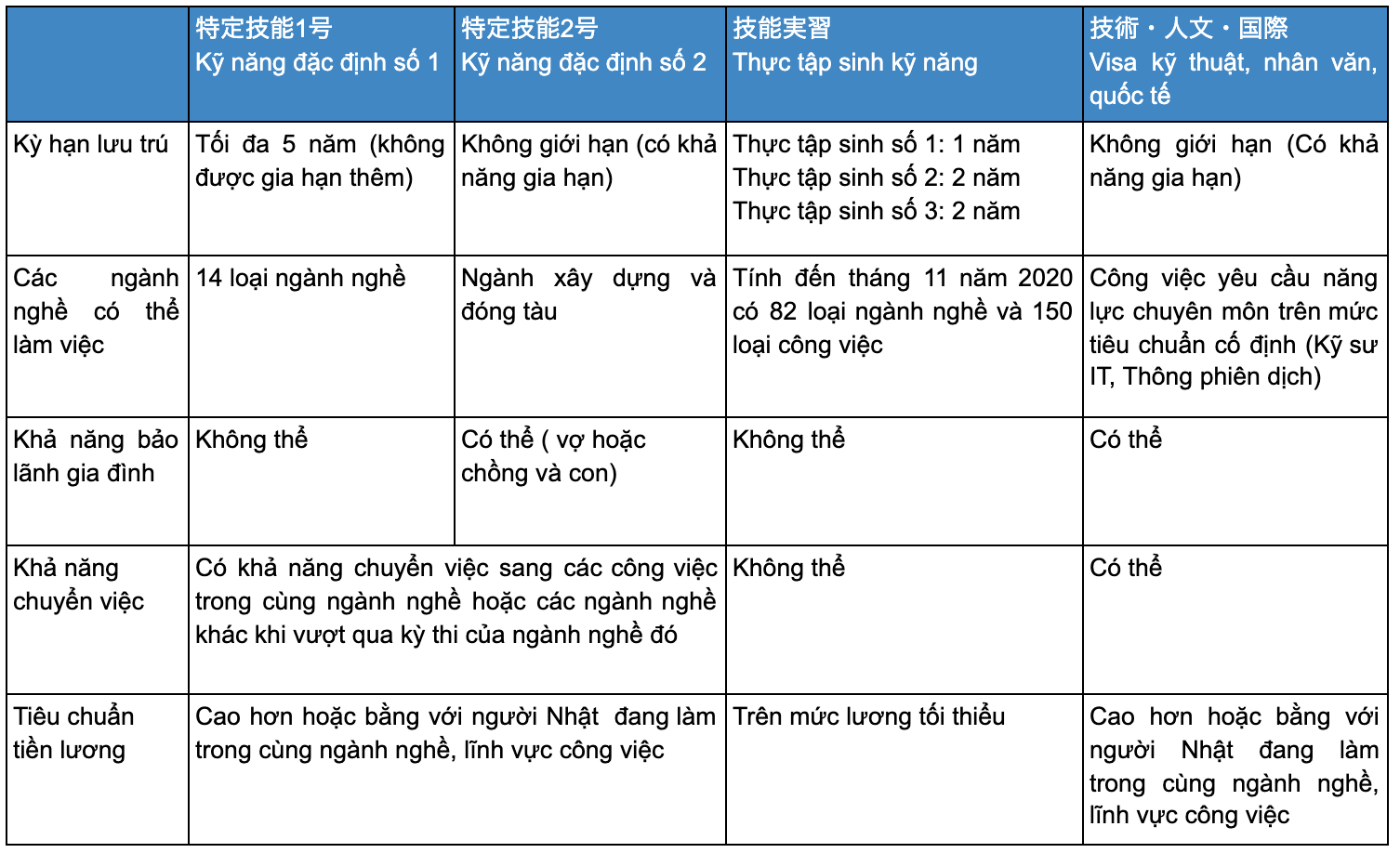 ③ So sánh visa kỹ năng đặc định với visa thực tập sinh kỹ năng và visa kỹ thuật, nhân văn, quốc tế.