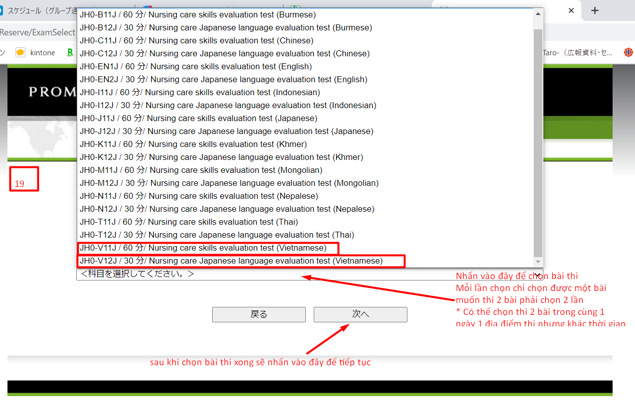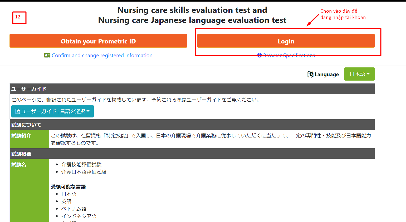Nhấp vào link sau: http://ac.prometric-jp.com/testlist/nc/nursingcare_japan.html