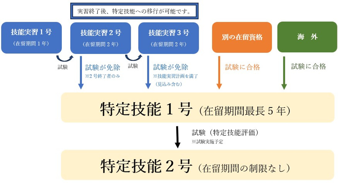 1.「技能実習2号」を良好に修了する、または「技能実習3号」の場合は実習計画を満了する。