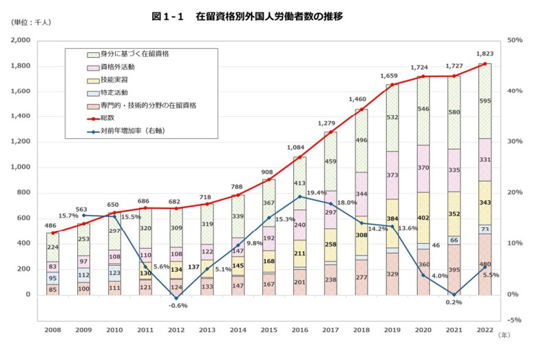 ▶参考:「外国人雇用状況」の届出状況まとめ(令和4年10月末現在)