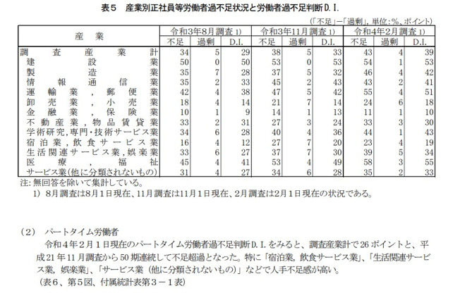 ▶参考:労働経済動向調査(令和4年2月)の概況